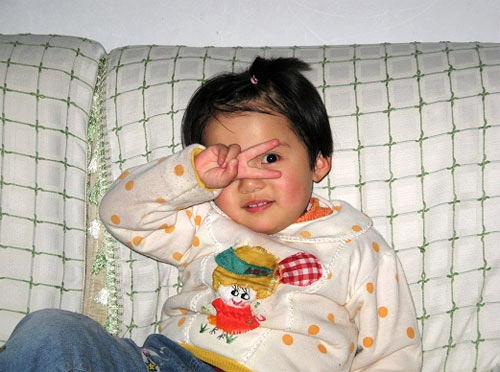 我的孩子小名叫貝貝,現(xiàn)在已經(jīng)四歲了,她有一雙明亮的大眼睛,兩個(gè)小酒窩,是個(gè)漂亮的小姑娘,很可愛(ài)!是我的心肝寶寶。