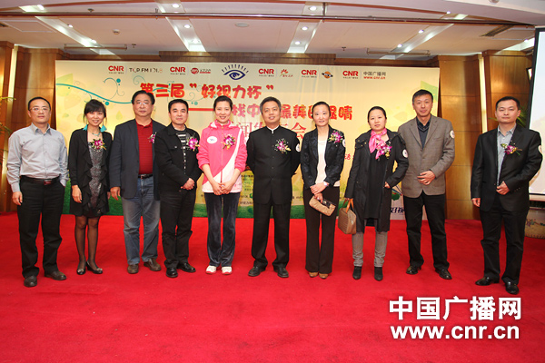 中廣網(wǎng)北京3月30日消息(記者 辛如記 胡曉輝)由中央人民廣播電臺(tái)首都頂級(jí)汽車調(diào)頻TOP FM101.8、中央人民廣播電臺(tái)文藝之聲FM106.6、中央人民廣播電臺(tái)娛樂廣播AM747、中央人民廣播電臺(tái)老年之聲AM1053、中國(guó)廣播網(wǎng)共同主辦、北京好視力科技發(fā)展有限公司協(xié)辦的第三屆“好視力杯”——尋找中國(guó)最美的眼睛活動(dòng),于2011年3月30日下午在中國(guó)職工之家正式啟動(dòng)。中央人民廣播電臺(tái)副臺(tái)長(zhǎng)王曉暉、中國(guó)廣播網(wǎng)總裁趙連軍、央廣都市文化傳媒有限公司總經(jīng)理孟昕等多位中央臺(tái)領(lǐng)導(dǎo)出席了活動(dòng)儀式,中國(guó)射擊運(yùn)動(dòng)員、第28屆奧運(yùn)會(huì)女子氣步槍冠軍杜麗,也以“好視力愛眼大使”的身份現(xiàn)身活動(dòng)現(xiàn)場(chǎng)。