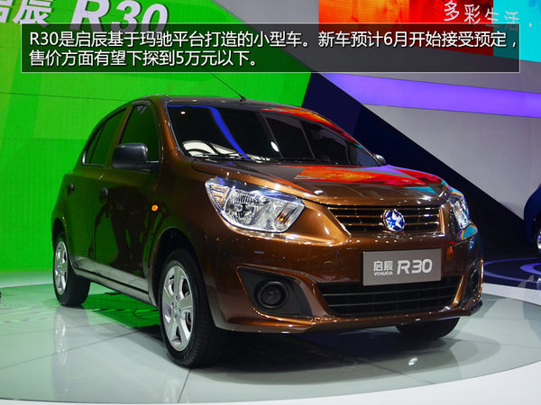 今年2014年的北京車展上,啟辰發(fā)布新款小型車R30,據(jù)了解這款車型的售價(jià)市場(chǎng)終端價(jià)格將進(jìn)入5萬元以下的區(qū)間,新車將在兩個(gè)月內(nèi)啟動(dòng)預(yù)售,并于9月正式上市銷售。而啟辰之前多次亮相的晨風(fēng)純電動(dòng)車也將于9月上市。此外現(xiàn)有車型啟辰D50、R50也會(huì)在4月底推出精彩版車型。