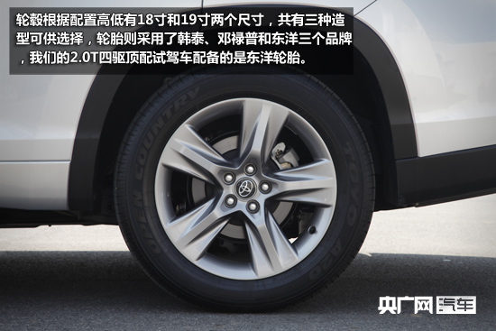 車輪輪轂根據(jù)配置高低有18寸和19寸兩個尺寸,共有三種輪轂造型可供選擇,輪胎則采用了韓泰、鄧祿普和東洋三個品牌,其中我們的2.0T四驅(qū)頂配試駕車配備的是東洋輪胎。如果想辨識全新漢蘭達是2.0T版還是3.5L V6版,最容易的辦法就是看尾標,2.0T版的尾標是D-4ST,而3.5L V6版則清晰的表明了V6(六缸發(fā)動機)身份。