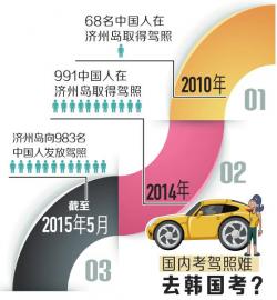 而截至2015年5月,濟(jì)州島已向1093名外國人發(fā)放了駕照,其中中國人占了90%。另據(jù)公安部統(tǒng)計數(shù)據(jù)顯示,2013年,中國共辦理持境外駕駛證換領(lǐng)中國駕駛證82140本,持韓國駕駛證換領(lǐng)中國駕駛證占境外駕駛證換證總數(shù)的8.7%。