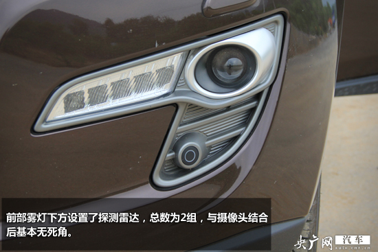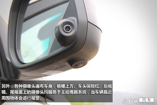 另外,各種攝像頭遍布車身,格柵上方、車頭保險(xiǎn)杠、后視鏡、尾箱蓋上的攝像頭均服務(wù)于主動(dòng)鷹眼系統(tǒng),當(dāng)車輛靠近周圍物體會(huì)進(jìn)行報(bào)警。前部霧燈下方設(shè)置了探測雷達(dá),總數(shù)為2組,與攝像頭結(jié)合后基本無死角。