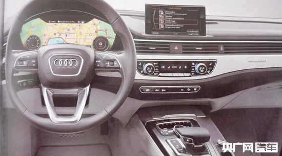 內(nèi)飾方面,新一代A4采用了類似新一代Q7的內(nèi)飾樣式,全數(shù)字化液晶儀表板,集成了導(dǎo)航等功能,顯示效果非常好,科技感十足。中控臺中央的多媒體顯示器獨立于中控臺存在,新車中央出風(fēng)口采用了一體式設(shè)計,中控臺整體更具層次感。