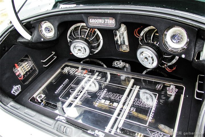 做內(nèi)飾的時候第一件事就是將車內(nèi)拆空。首先將車內(nèi)原有的隔音全部鏟掉,換成了安博士的藍鉆系列。音響器材由古董級的老款阿爾派9861主機走光纖配合另一個老古董阿爾派701音頻處理器、德國零點功放和喇叭、俄羅斯切爾諾夫線材配合組成。
