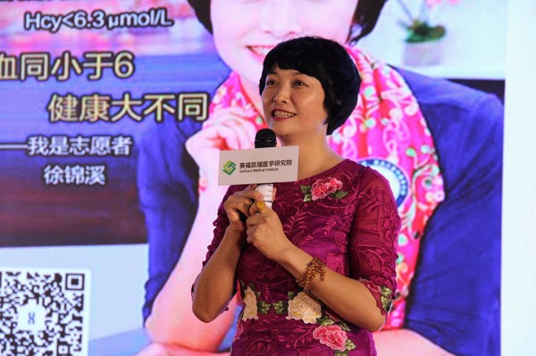 下午比賽開場(chǎng)前,時(shí)代基因健康教育部總監(jiān)徐錦溪女士為大家講解同型半胱氨酸的危害,并為新增的來自全國(guó)各地的志愿者和區(qū)域管理者頒發(fā)證書,期待他們?yōu)楦嗟娜藥ソ】岛完P(guān)愛。