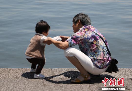 圖為:浙江杭州老人怡兒弄孫!⊥鮿 攝