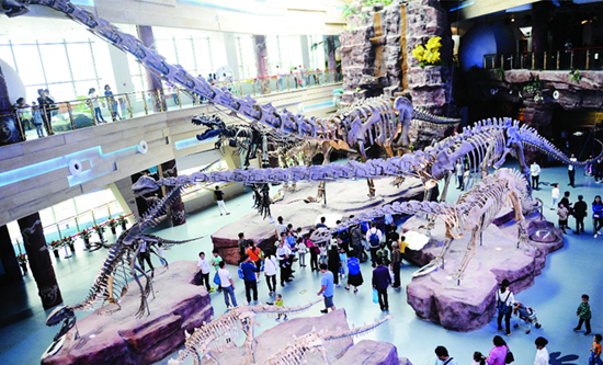 ◆ 10月1日,位于合肥市政務(wù)區(qū)的安徽省地質(zhì)博物館內(nèi),人們?cè)趨⒂^大型恐龍骨架。當(dāng)日是國(guó)慶假期第一天,許多市民帶著孩子走進(jìn)科普?qǐng)鲳^,學(xué)習(xí)知識(shí),開(kāi)闊眼界。徐旻昊攝