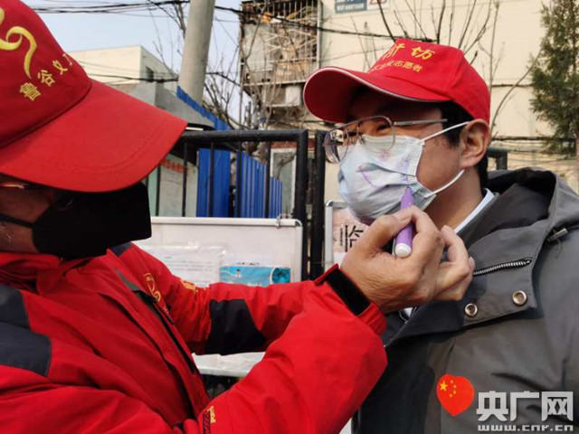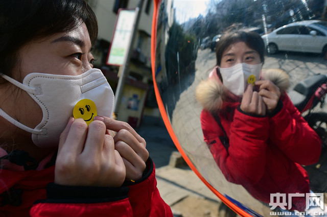 北京石景山區(qū)魯谷街道為防護口罩貼笑臉,鼓勵居民笑對戰(zhàn)“疫”(央廣網(wǎng)發(fā) 通訊員供圖)