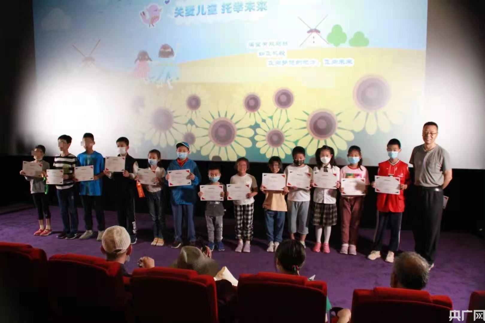 此時(shí)家長(zhǎng)也帶著孩子們陸續(xù)到達(dá)影院,孩子們?cè)谶M(jìn)場(chǎng)前愉快地交流著。