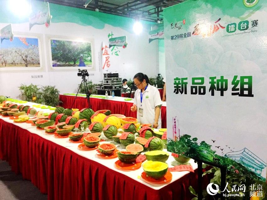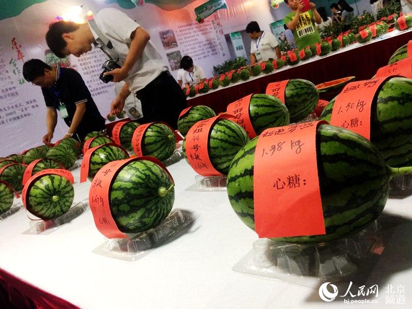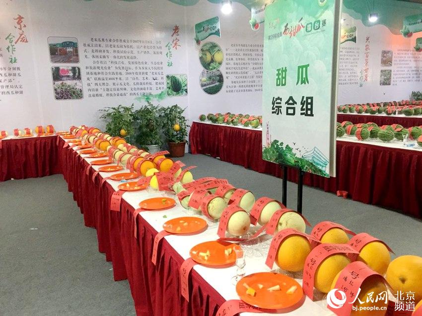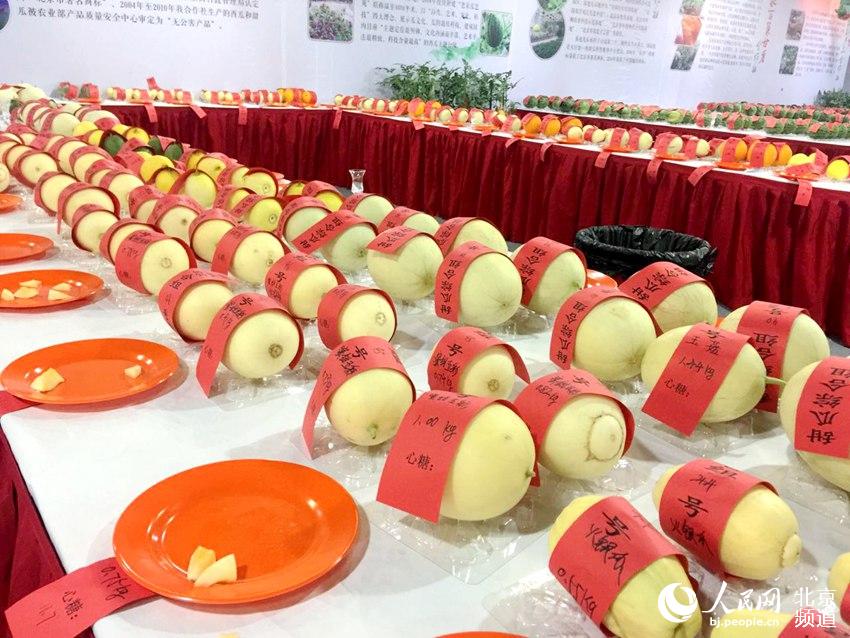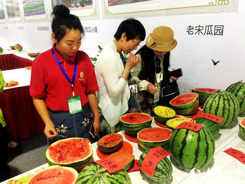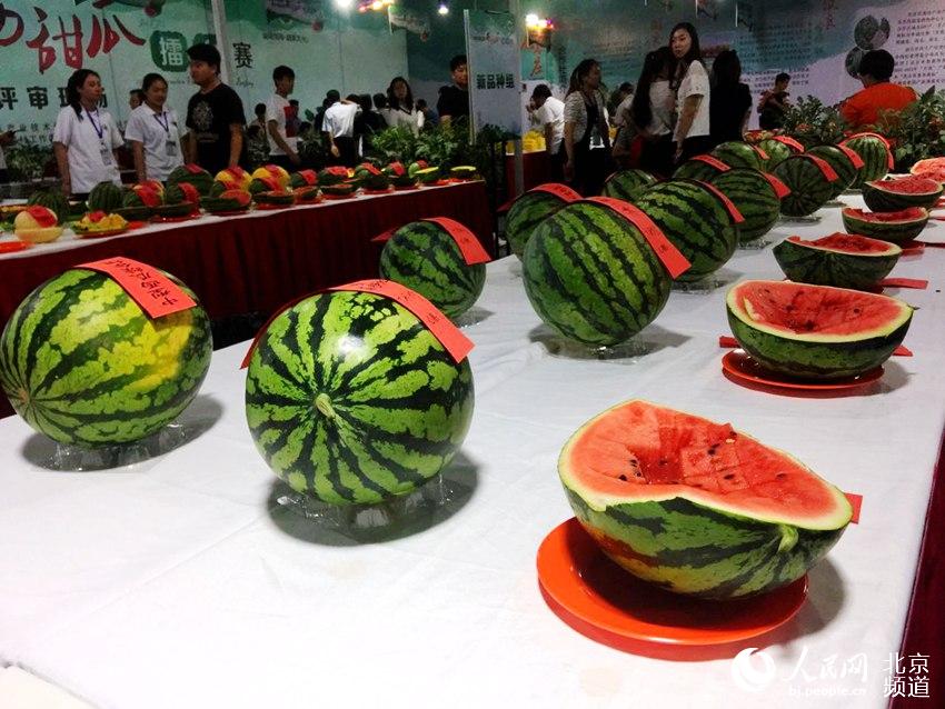 上千個(gè)西瓜甜瓜集中亮相。人民網(wǎng) 孟竹 攝 -
