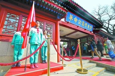八寶山革命公墓舉辦的“我為先烈來站崗——致敬先烈、守護(hù)英靈”少年先鋒崗系列活動也于昨天啟動。公墓前,來自石景山區(qū)實(shí)驗(yàn)小學(xué)和京源學(xué)校的兩組小同學(xué)手持少先隊(duì)旗肅穆地站立在先鋒崗上。這是八寶山革命公墓今年策劃并首創(chuàng)的一項(xiàng)愛國主義教育實(shí)踐活動;顒臃譃椤爸v述革命故事、祭奠革命先烈、守護(hù)革命英靈、頌揚(yáng)革命精神”四個部分。兩所學(xué)校的100余名優(yōu)秀少先隊(duì)員參與此次活動。今后,這一系列活動還將吸引更多的優(yōu)秀少先隊(duì)員參加。(記者金可)