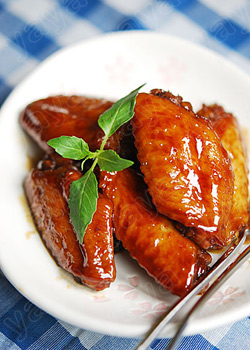 雞翅500克,可樂500克,姜、八角、油、白糖、醬油各適量,白酒、生粉各適量