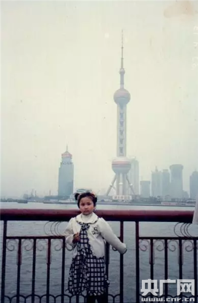“我是90后新手媽媽Jessica,這是1997年4月13日,我7歲生日之后爸媽帶我來玩的時(shí)候拍的。逛了一天花花世界般的浦西再看看浦東,東方明珠起來了,它下面那塊大大的‘浦東歡迎你’也很顯眼!