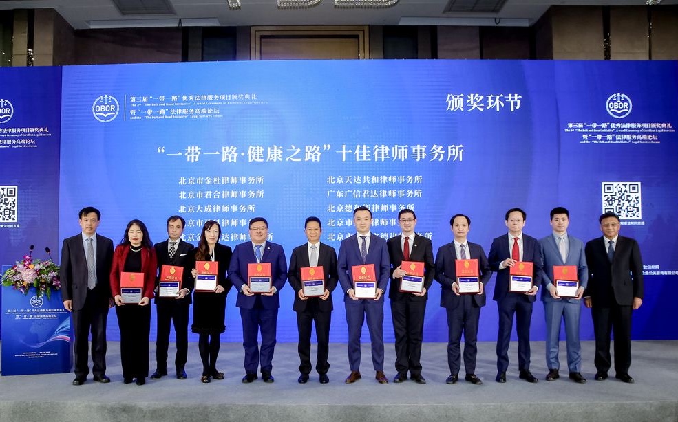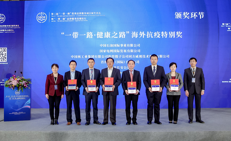 央廣網(wǎng)北京12月13日消息(記者孫瑩)第三屆“一帶一路”優(yōu)秀法律服務(wù)項(xiàng)目頒獎(jiǎng)典禮暨“一帶一路”法律服務(wù)高端論壇昨天在京舉行。“一帶一路·健康之路”優(yōu)秀法律服務(wù)案例、十佳律師、十佳法務(wù)團(tuán)隊(duì)、十佳律師事務(wù)所、海外抗疫特別獎(jiǎng)、年度人物等6項(xiàng)大獎(jiǎng)揭曉。國(guó)務(wù)院國(guó)資委規(guī)劃局局長(zhǎng)謝軍,中國(guó)法學(xué)會(huì)副會(huì)長(zhǎng)、中國(guó)國(guó)際法學(xué)會(huì)會(huì)長(zhǎng)、中國(guó)政法大學(xué)教授黃進(jìn)獲評(píng)年度人物。中國(guó)法學(xué)會(huì)副會(huì)長(zhǎng)張鳴起為年度人物頒獎(jiǎng)。