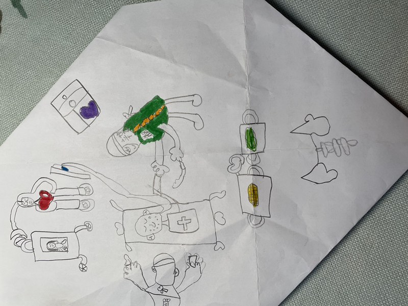 一位小朋友送給我的畫《醫(yī)務(wù)人員們?cè)诠ぷ鳌?/font>