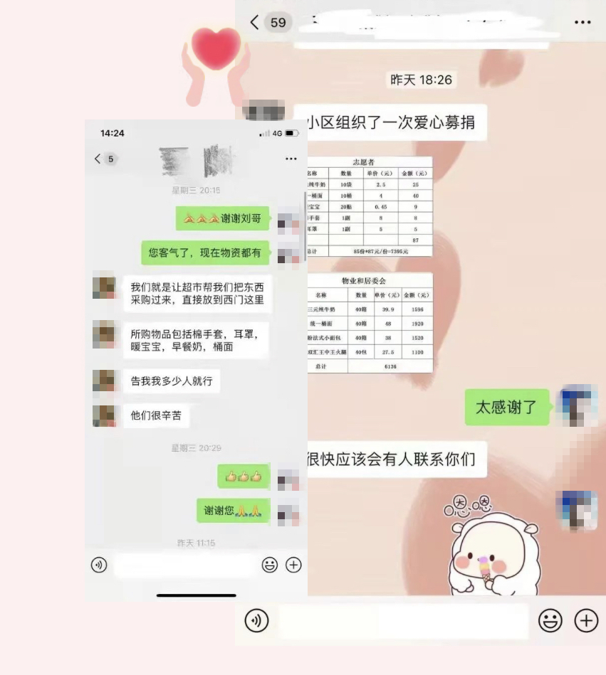 居民自發(fā)送給居委會(huì)、物業(yè)、保安的物資
