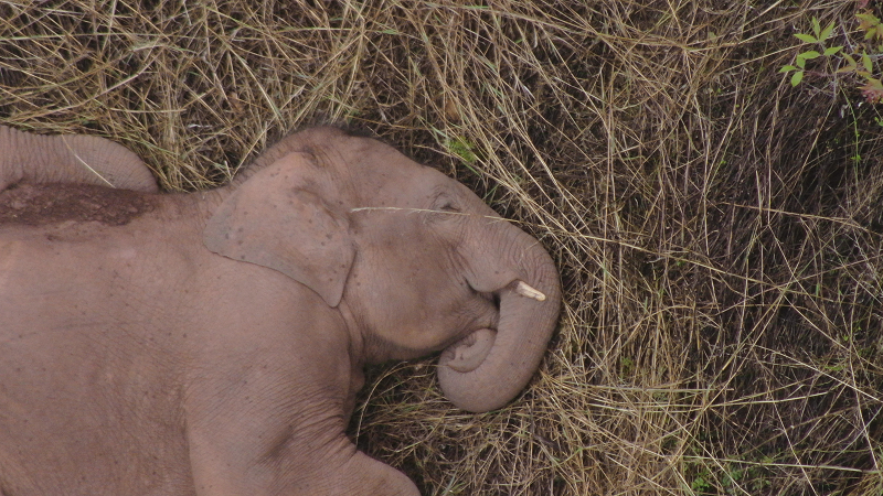 6月7日9時27分,云南省森林消防總隊(duì)無人機(jī)監(jiān)測任務(wù)分隊(duì)監(jiān)測顯示,亞洲象群在晉寧區(qū)夕陽鄉(xiāng)賴家新村山林地里睡覺休息(央廣網(wǎng)發(fā) 云南省森林消防總隊(duì)供圖)