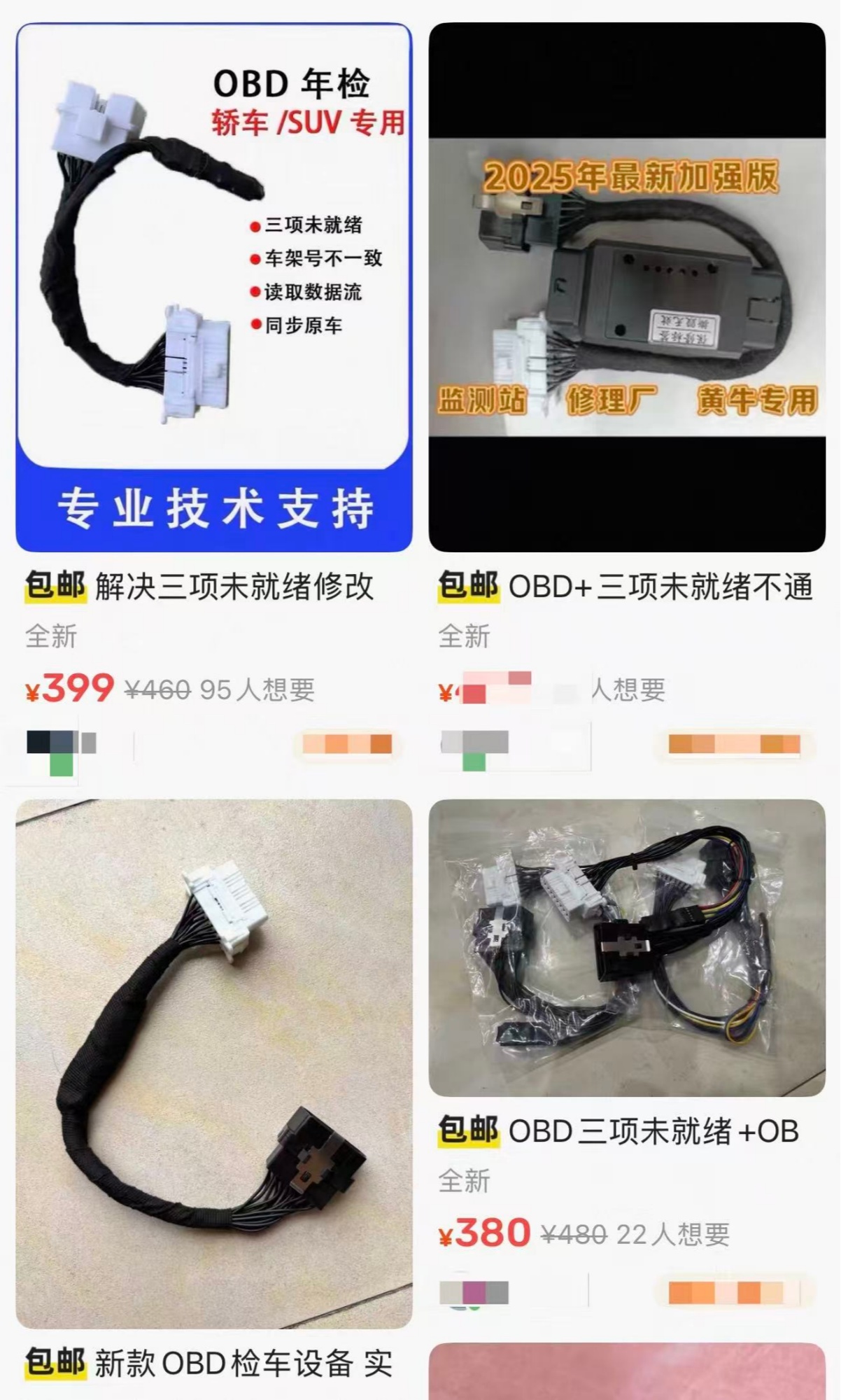 在某線上交易平臺(tái)輸入OBD后就會(huì)提示OBD年檢未就緒的搜索項(xiàng),商品介紹中都寫得很隱晦:本產(chǎn)品主要為了車輛預(yù)檢,協(xié)議學(xué)習(xí)使用,并強(qiáng)調(diào):“不知道是什么的勿擾”。