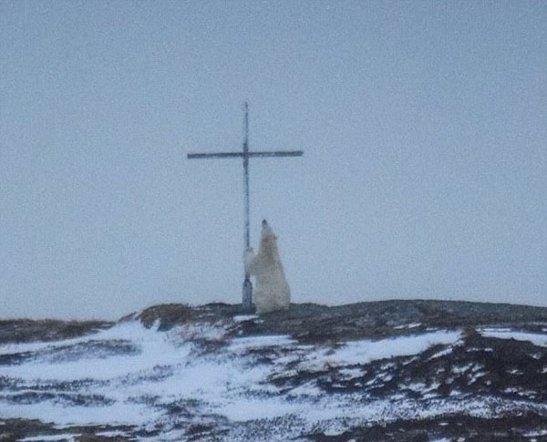 近日,加拿大22歲的女?dāng)z影師杰西卡安德魯斯在紐芬蘭無意間捕捉到了一只北極熊對(duì)著十字架“祈禱”的畫面,沒想到北極熊竟也能如此虔誠(chéng)。