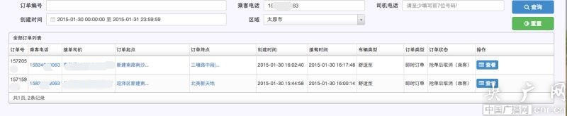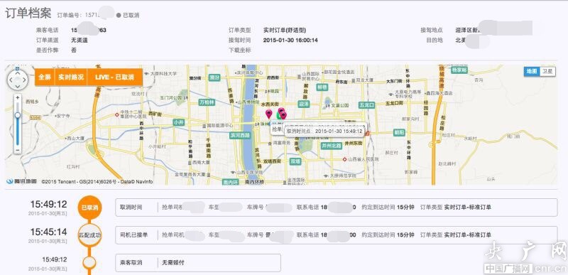 截圖顯示該手機(jī)號(hào)注冊(cè)后當(dāng)天創(chuàng)建兩個(gè)訂單,乘客上車(chē)后執(zhí)法人員同時(shí)上車(chē)扣押車(chē)輛