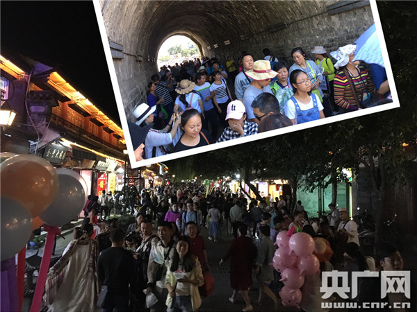 這兩天的大理古城,用摩肩接踵來形容,一點(diǎn)都不為過。古城的街道上,燒烤用的竹簽、食品包裝袋、礦泉水瓶等垃圾隨處可見。盡管沿途有交警指揮交通,但景區(qū)附近的道路還是嚴(yán)重?fù)矶拢钡酵砩?1點(diǎn)半,古城附近的道路擁堵情況,才略微有所緩解。有司機(jī)向記者反映,“太堵了這兩天。昨天我拉了六個客人,從火車站走,回古城,一般都是一個小時就到,昨天走了五個多小時!