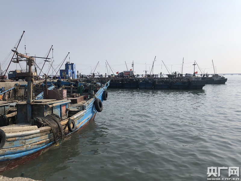 青島紅島漁港碼頭,多艘漁船往來(lái)打撈運(yùn)送海星(記者王偉 攝)