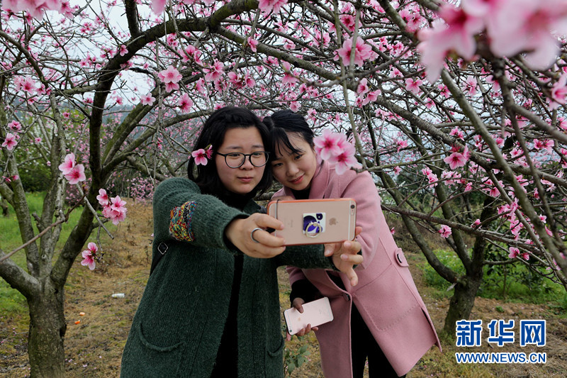 游客在桃花林中合影留念。 近年來,巫山縣利用長江兩岸的土壤特性,在山脊的高山帶發(fā)展生態(tài)林,中山帶發(fā)展脆李、油桃等小水果,低山帶發(fā)展種植柑橘產(chǎn)業(yè)。每年春天,長江夾岸漫山遍野開滿李花,成為一道美麗的生態(tài)防線。