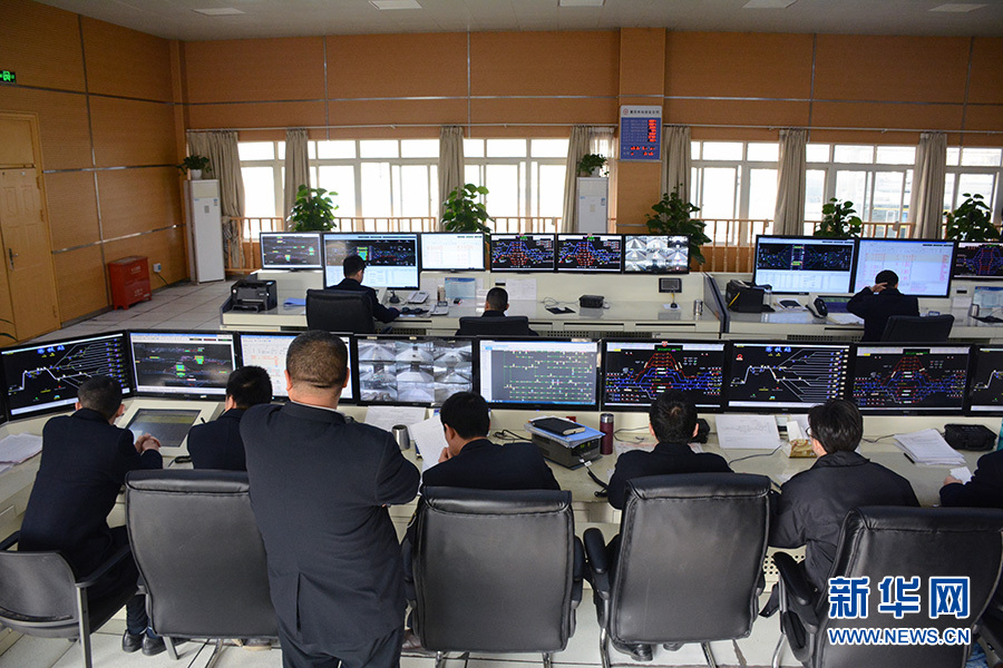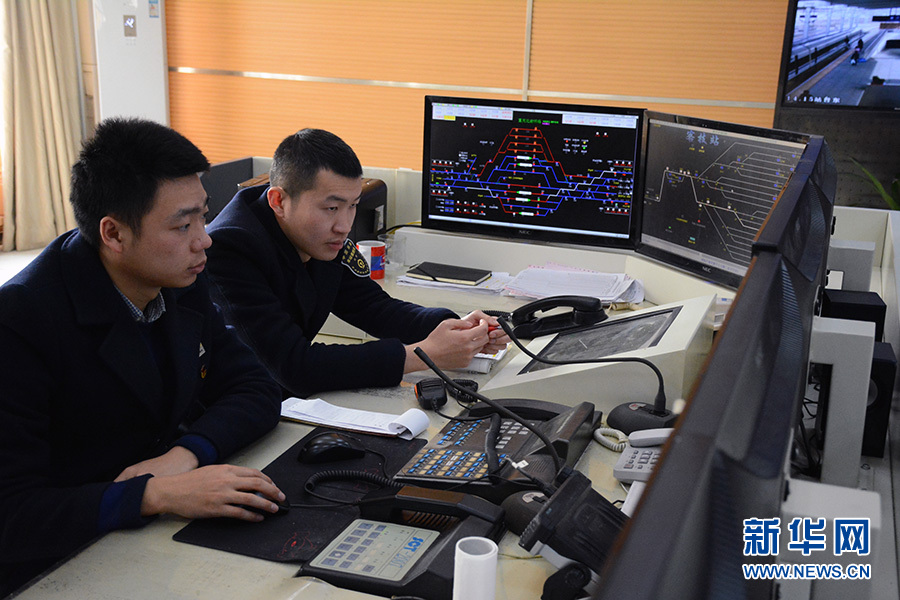 運(yùn)轉(zhuǎn)室主要負(fù)責(zé)站內(nèi)列車(chē)的調(diào)度工作,保證列車(chē)安全正點(diǎn)運(yùn)行。通過(guò)控制系統(tǒng),車(chē)站值班員利用電話和火車(chē)司機(jī)聯(lián)系,通知列車(chē)走哪條線路,進(jìn)入哪個(gè)站臺(tái)。新華網(wǎng)趙紫東 攝 -
