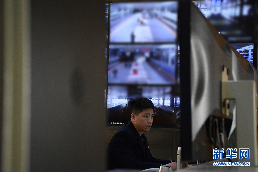 重慶北站運(yùn)轉(zhuǎn)室內(nèi),車(chē)站值班員正認(rèn)真監(jiān)控列車(chē)運(yùn)行情況。新華網(wǎng)趙紫東 攝 -