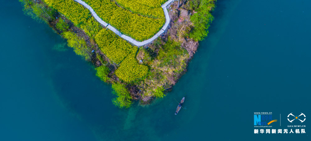 陽春三月,春水初生,花海漸盛。在重慶市黔江區(qū)阿蓬江畔,油菜花海沿著江岸蔓延開來,正是半江春色半江水。圖為無人機(jī)航拍重慶阿蓬江春色,詩情畫意濃。新華網(wǎng)發(fā)(王江龍 攝)