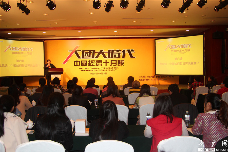 10月21日,由中央人民廣播電臺(tái)經(jīng)濟(jì)之聲、央廣網(wǎng)主辦的《大國(guó)大時(shí)代----中國(guó)經(jīng)濟(jì)十月談》系列時(shí)事報(bào)告會(huì)之六“生意談”,在廣電國(guó)際酒店舉行。今天的主題是《生意談:中國(guó)如何和世界談生意?》。圖為報(bào)告會(huì)現(xiàn)場(chǎng)(央廣網(wǎng) 李靜/攝)