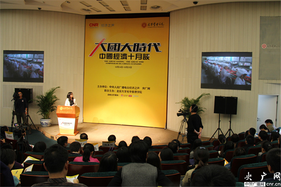 10月23日,由中央人民廣播電臺經(jīng)濟(jì)之聲、央廣網(wǎng)主辦的《大國大時(shí)代----中國經(jīng)濟(jì)十月談》系列時(shí)事報(bào)告會(huì)之八“社會(huì)談”,在北大光華管理學(xué)院阿里巴巴報(bào)告廳舉行。今天的主題是《社會(huì)談:改革需要多少個(gè)配套窗口?》。圖為報(bào)告會(huì)現(xiàn)場。(央廣網(wǎng) 于琦/攝)
