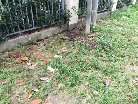 下午3點(diǎn)多,揚(yáng)子晚報記者來到事發(fā)小區(qū),幾乎所有小區(qū)居民都知道發(fā)生了大事,一位比較熱心的中年男士給記者指了路。事發(fā)房屋為該小區(qū)的一個車庫,記者趕到時,車庫的門緊鎖,門口也沒有警戒標(biāo)志,車庫外面圍了不少群眾,大家都三五成群,在低聲討論著什么。一位熱心的大媽告訴揚(yáng)子晚報記者,尸體是從該幢房屋邊、靠近圍墻的那側(cè)挖出來的。記者趕到時,地面已經(jīng)經(jīng)過處理,草皮已經(jīng)重新蓋上,不仔細(xì)看很難發(fā)現(xiàn)。走近后,記者發(fā)現(xiàn),地面的泥土比較松軟,土質(zhì)比較濕潤,確實是被挖過的,而就在這片草皮附近,還有一副看上去比較新、但是已經(jīng)被使用過的醫(yī)用手套。