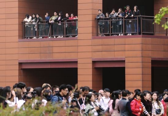 《我們的少年時(shí)代》長(zhǎng)沙拍攝現(xiàn)場(chǎng)圍觀的同學(xué)們。