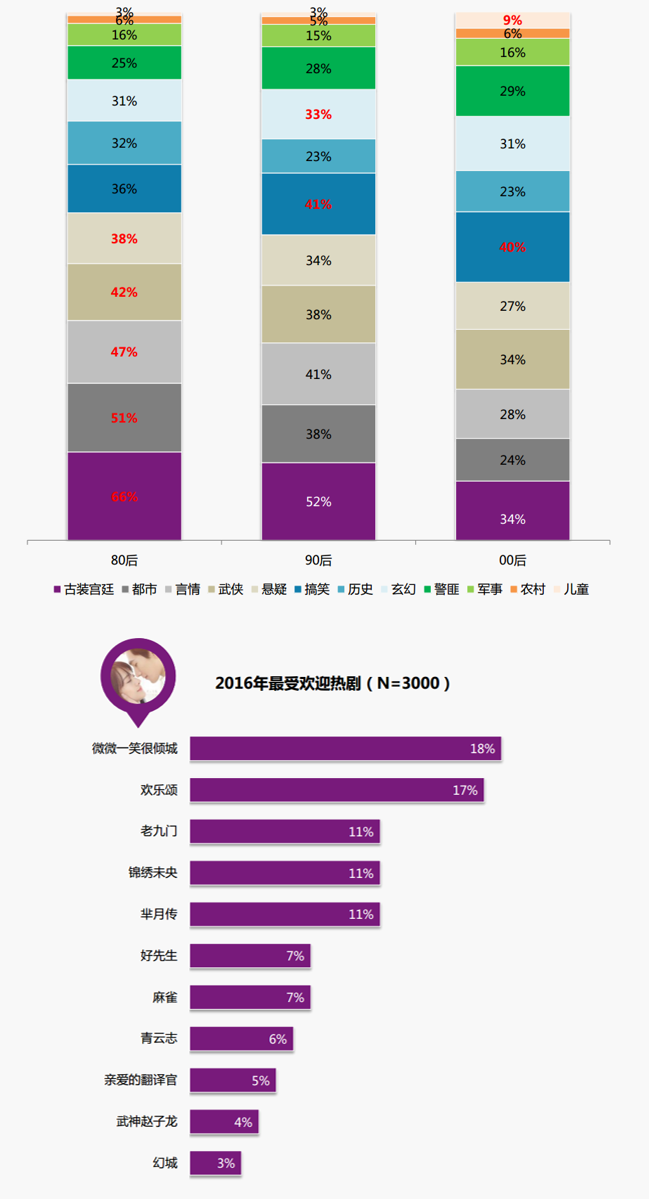當下的年輕群體,是典型的“雜食性”動物,在追劇的題材上涉獵廣泛,有著從古裝宮廷到警匪軍事的超大跨度,喜歡都市言情的同時,也愛追懸疑燒腦類題材。雖然年輕人愛好多元,但喜劇卻是00后和 90后都偏愛題材。由此看來,憑借國民網(wǎng)綜《火星情報局》和一眾爆笑劇綜,享有“喜劇造劇工廠”之稱的優(yōu)酷,霸屏00后和90后的想象力更大。