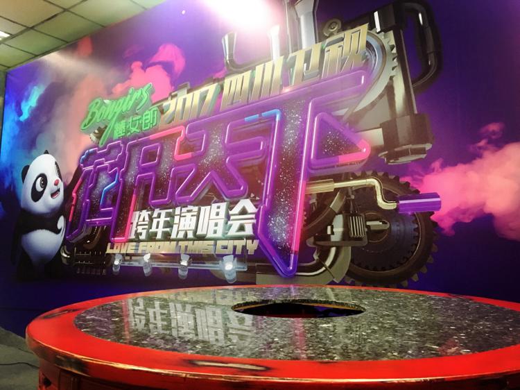 在主會(huì)場旁邊,網(wǎng)絡(luò)直播的第二現(xiàn)場已經(jīng)搭建完畢,正在最后的調(diào)試當(dāng)中。除了近距離為粉絲們介紹現(xiàn)場盛況外,現(xiàn)場還會(huì)架起真的火鍋,邊吃邊跨年。都知道四川人愛吃,但愛吃成這樣也是讓人大開眼界。
