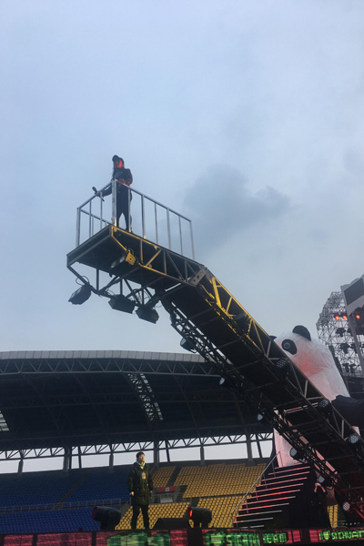 熊貓既充當(dāng)舞臺(tái)又兼顧DJ,如此忙碌的它們還不忘做最忠實(shí)的觀眾。熊貓的眼睛由LED組成,除了作為舞臺(tái)背景燈光之外,還可以靈活的轉(zhuǎn)動(dòng),并追隨演員的腳步,活靈活現(xiàn),完全不輸給真正的熊貓。