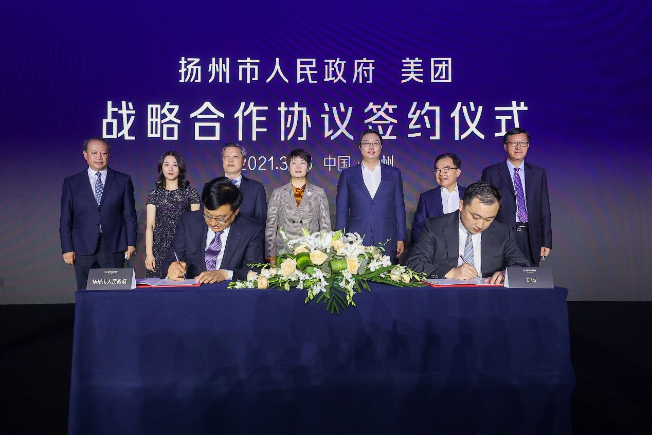 現(xiàn)場(chǎng),揚(yáng)州市人民政府與美團(tuán)簽署了戰(zhàn)略合作協(xié)議,宣布雙方通過(guò)打造新型智能城市,共襄揚(yáng)州“好地方”建設(shè),提升“世界美食之都”全球影響力。揚(yáng)州市市長(zhǎng)張寶娟出席活動(dòng),揚(yáng)州市市委副書記、統(tǒng)戰(zhàn)部部長(zhǎng)孔令俊現(xiàn)場(chǎng)致辭,副市長(zhǎng)丁一、方桂林,市政府秘書長(zhǎng)尤在晶參加活動(dòng)。