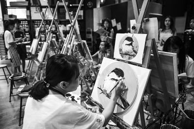 走出陶藝社不遠(yuǎn),“同或”繪館迎面而至。找一塊尺寸合適的畫布,支起畫架,就可以在畫布上隨心所欲創(chuàng)作了。一位沒有任何繪畫基礎(chǔ)的女生花了三個小時就點(diǎn)染出一幅“桃花圖”。店家半開玩笑說,她的畫作頗有幾分知名畫家周春芽的影子,后者的“桃花”系列是國內(nèi)藝術(shù)拍賣場的熟客。從繪畫館出門轉(zhuǎn)個彎兒,就是一家舞蹈培訓(xùn)室,幾乎每天都有七八人在這里練習(xí)國標(biāo)、探戈或是拉丁,教師悉數(shù)為科班出身。
