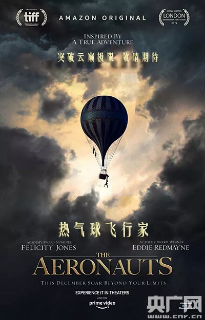 《熱氣球飛行家》講述了19世紀英國科學家真實的探險故事:首次借助無動力熱氣球,飛抵人類此前從未抵達過的高度,探尋天空的秘密,并為人類預測天氣奠定了重要基礎。片中男女主角不僅將人類未攜帶氧氣瓶僅利用熱氣球上升的最高高度從26000英尺提升至30000英尺,而且這項紀錄在之后的40年都無人打破。該事件中所記錄的科學數(shù)據(jù),成為現(xiàn)代氣象學觀測的基礎,改變了人類只能依靠動物或植物的反應才能勉強預知天氣的狀況,也加深了人們對平流層的理解,對于推動人類航空探索也有著重要意義。