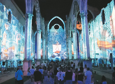 星空下的里斯本”聲光電體驗(yàn)式藝術(shù)展近日亮相葡萄牙首都里斯本的卡爾莫教堂遺址,這項(xiàng)展覽利用多媒體影像展示,配以葡萄牙特色民族音樂,展現(xiàn)葡萄牙和里斯本豐富的歷史文化。