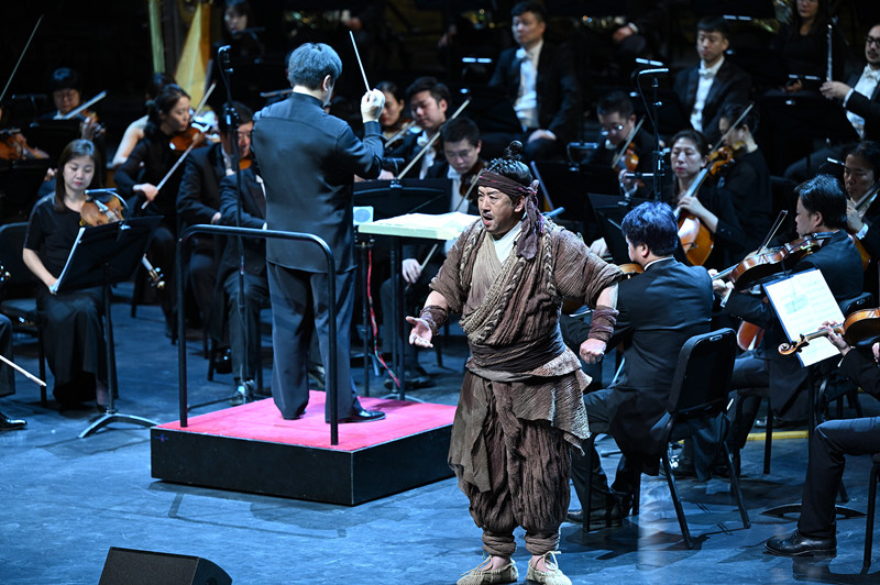 當(dāng)晚的演出,在北京交響樂(lè)團(tuán)藝術(shù)總監(jiān)李飚執(zhí)棒下,北京交響樂(lè)團(tuán)、北京京劇院、北京音協(xié)合唱團(tuán)三方聚力,以龐大的陣容將《京城大運(yùn)河》演繹得氣勢(shì)如虹。每個(gè)章節(jié)的每首曲目所表達(dá)的內(nèi)容和意境層層遞進(jìn)、環(huán)環(huán)相扣。如第一樂(lè)章《一支塔影見(jiàn)通州》,描寫(xiě)了通州漕運(yùn)碼頭、驗(yàn)糧樓、張家灣、通州號(hào)子等場(chǎng)景,而最后的聲聲號(hào)子,則引出下一樂(lè)章《天上的星星郭守敬》,講述大運(yùn)河的修建。