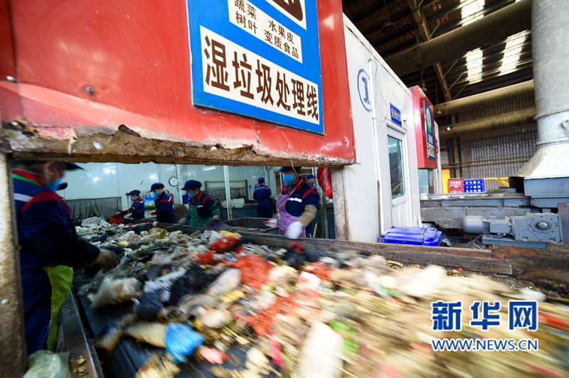 3月29日,廈門(mén)市垃圾分類(lèi)處理廠的工人在對(duì)廚余垃圾進(jìn)行初步分揀。 新華社記者姜克紅攝 -