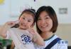一名小女孩在洗手間找到自己的毛巾,十分高興。新華網(wǎng) 肖和勇 攝