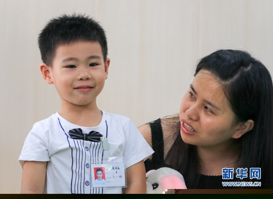 說(shuō)出自己的名字,這名靦腆的小男孩在老師的鼓勵(lì)下做到了。介紹自己,認(rèn)識(shí)新朋友,才能更快融入校園生活。新華網(wǎng) 肖和勇 攝 -