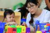 換個(gè)新環(huán)境,照樣有玩具、有陪伴。4日,一名家長(zhǎng)陪伴孩子在幼兒園里玩耍。新華網(wǎng) 肖和勇 攝 -