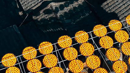 每年11月下旬,隨著小雪節(jié)氣帶來的干燥北風(fēng),村民們將采摘的油柿削皮、串架,整齊鋪陳在屋頂竹匾上。從鮮柿到成品需經(jīng)歷30天左右,至少5次揉捏和翻曬,才能讓糖分充分析出,形成天然糖霜。