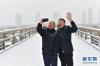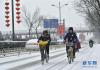 2月21日,在太原市濱河?xùn)|路,兩位市民冒雪騎行。當(dāng)日,山西省氣象局發(fā)布暴雪黃色預(yù)警,太原市區(qū)瑞雪普降。 新華社記者 曹陽 攝 -
