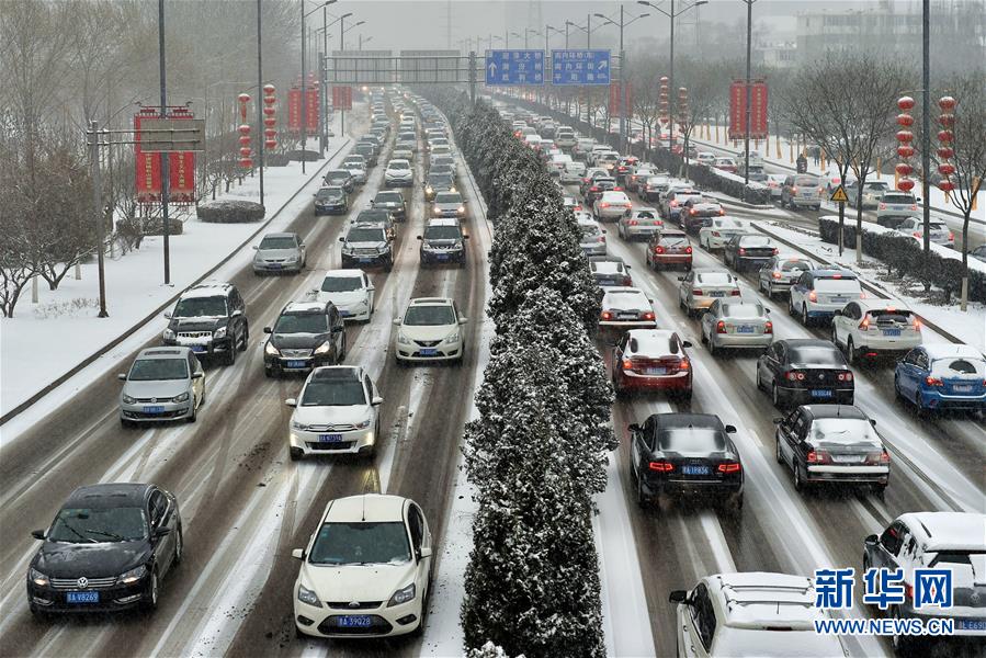 圖為雪中的太原市濱河?xùn)|路(2月21日攝)。當(dāng)日,山西省氣象局發(fā)布暴雪黃色預(yù)警,太原市區(qū)瑞雪普降。 新華社記者 曹陽 攝 -