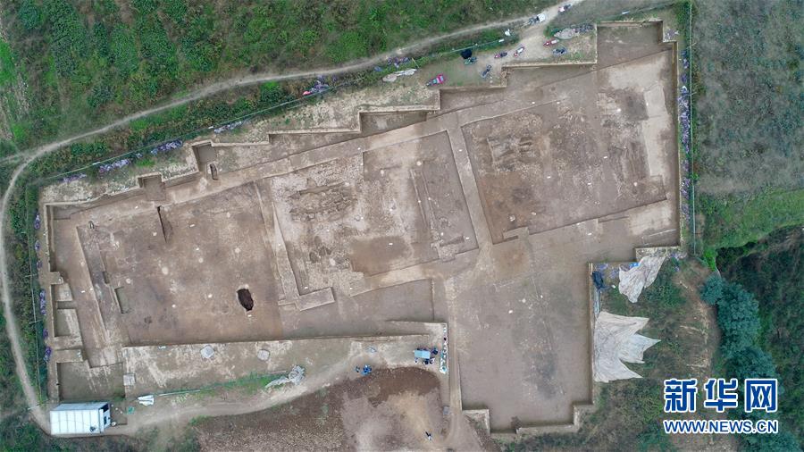 這是航拍的秦咸陽城胡家溝建筑遺址(資料照片)。近日,考古工作者首次在秦咸陽城遺址區(qū)域內(nèi)發(fā)現(xiàn)秦代大型國家府庫遺存。這是繼20世紀(jì)70至80年代發(fā)掘秦咸陽宮遺址以來,在秦咸陽大遺址保護區(qū)內(nèi)再次發(fā)現(xiàn)秦代大型官署建筑遺址。此次發(fā)現(xiàn)的遺址位于陜西省西咸新區(qū)秦漢新城窯店鎮(zhèn),地處秦都咸陽城宮區(qū)以西的胡家溝塬地。遺址建筑四面為夯土垣墻,墻體厚度約3米,寬19.5米,總長110米。發(fā)掘過程中出土了數(shù)量眾多的石質(zhì)編磬殘塊,目前已在23件殘塊上發(fā)現(xiàn)了小篆“北宮樂府”等字樣,再次證實了秦代設(shè)樂府的史實。新華社發(fā) -